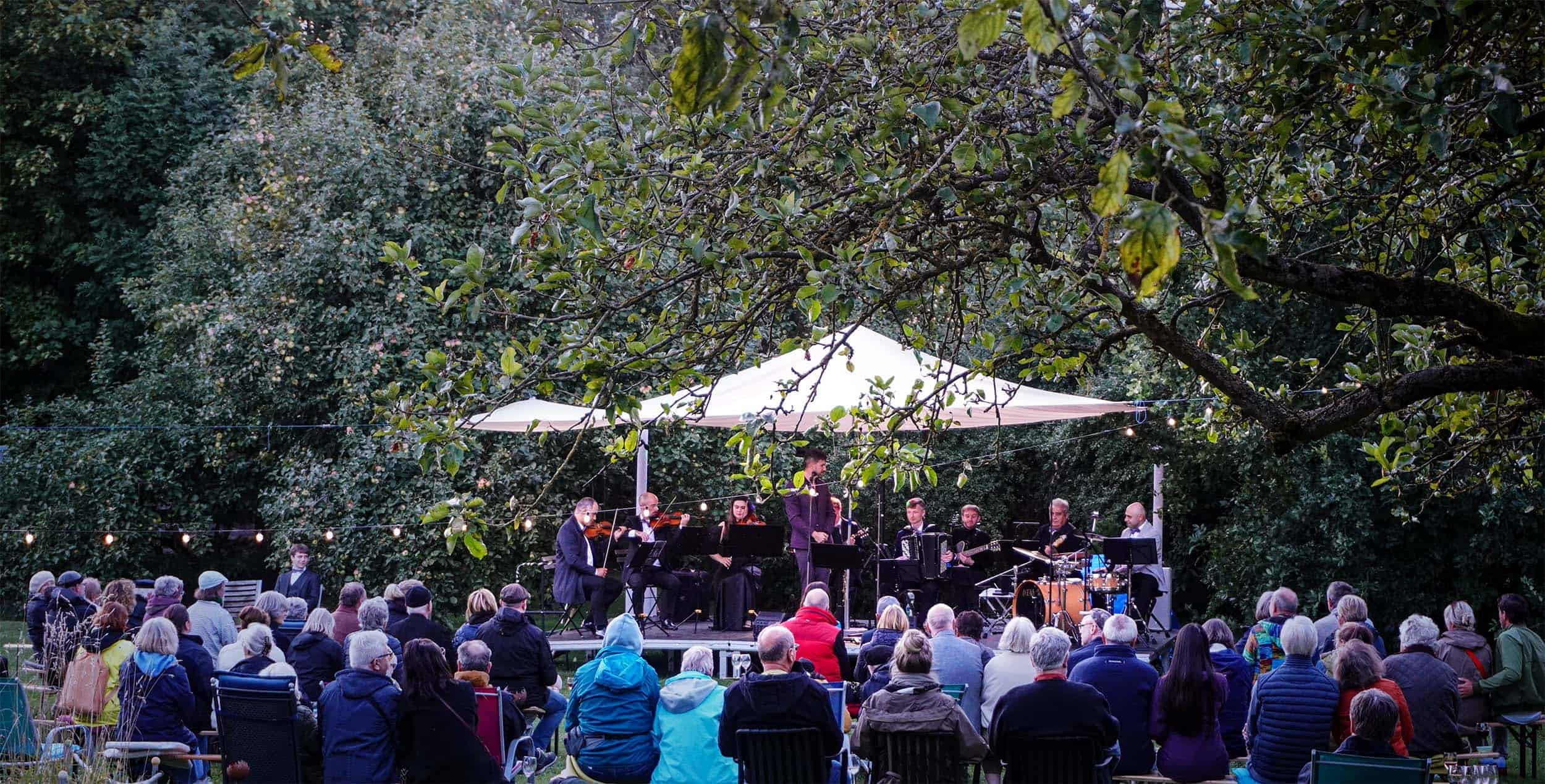 Kultur unterm Apfelbaum – das sind Auszeiten vom Alltag und Konzerte unterm Apfelbaum im Sommergarten. Und wenn das Wetter einmal nicht mitspielt oder die Jahreszeit es verlangt, empfangen wir Sie in gemütlichen Räumen – mit der gleichen Herzlichkeit.”
